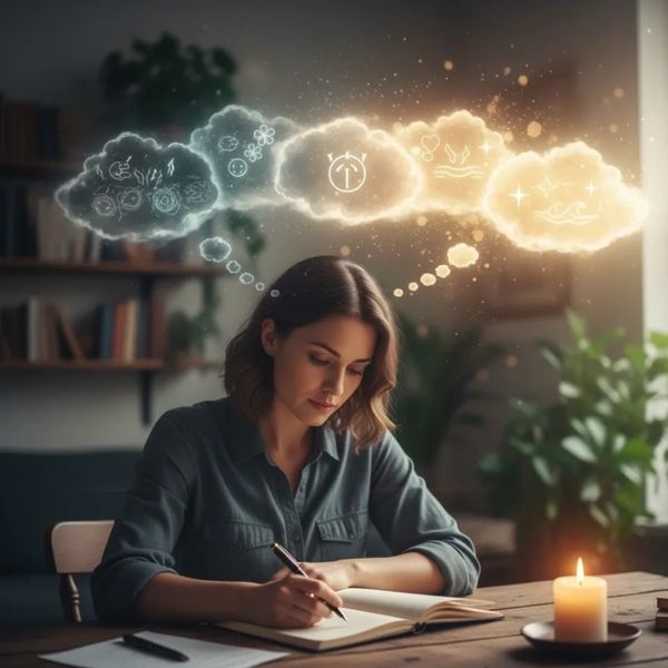 Release negative thoughts affecting health. Journaling: Replace fear thoughts with healing thoughts